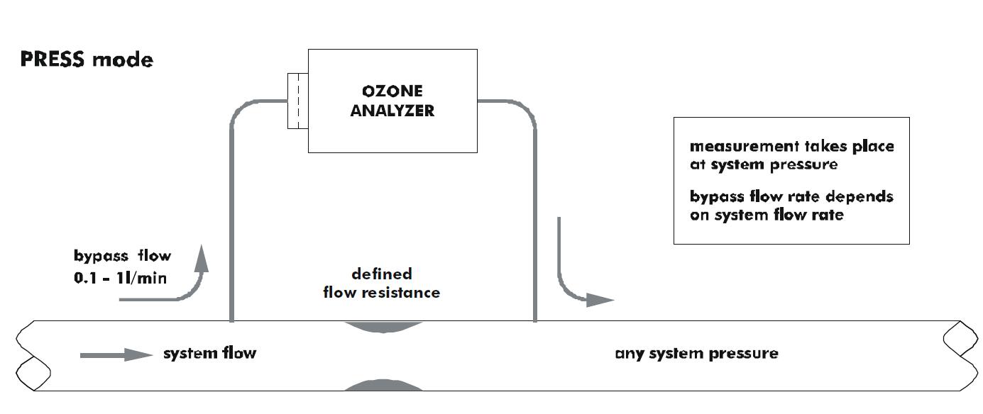 兩種連接分析儀到臭氧系統(tǒng)的模式,全流量和旁路,當然也需要分析儀配備一個內(nèi)部壓力傳感器,這是抵抗臭氧。壓力傳感器的壓力范圍,以及內(nèi)部微處理器執(zhí)行的壓力補償范圍,必須與臭氧系統(tǒng)中實際可能發(fā)生的壓力范圍相匹配。我們提供的壓力范圍為0.5-1.5至0.5-4.0 bar。